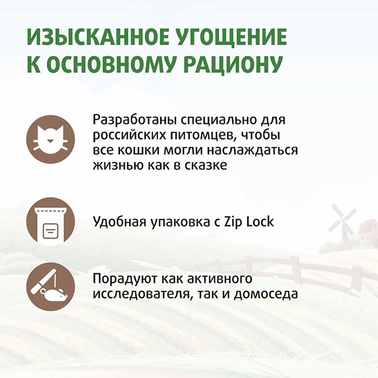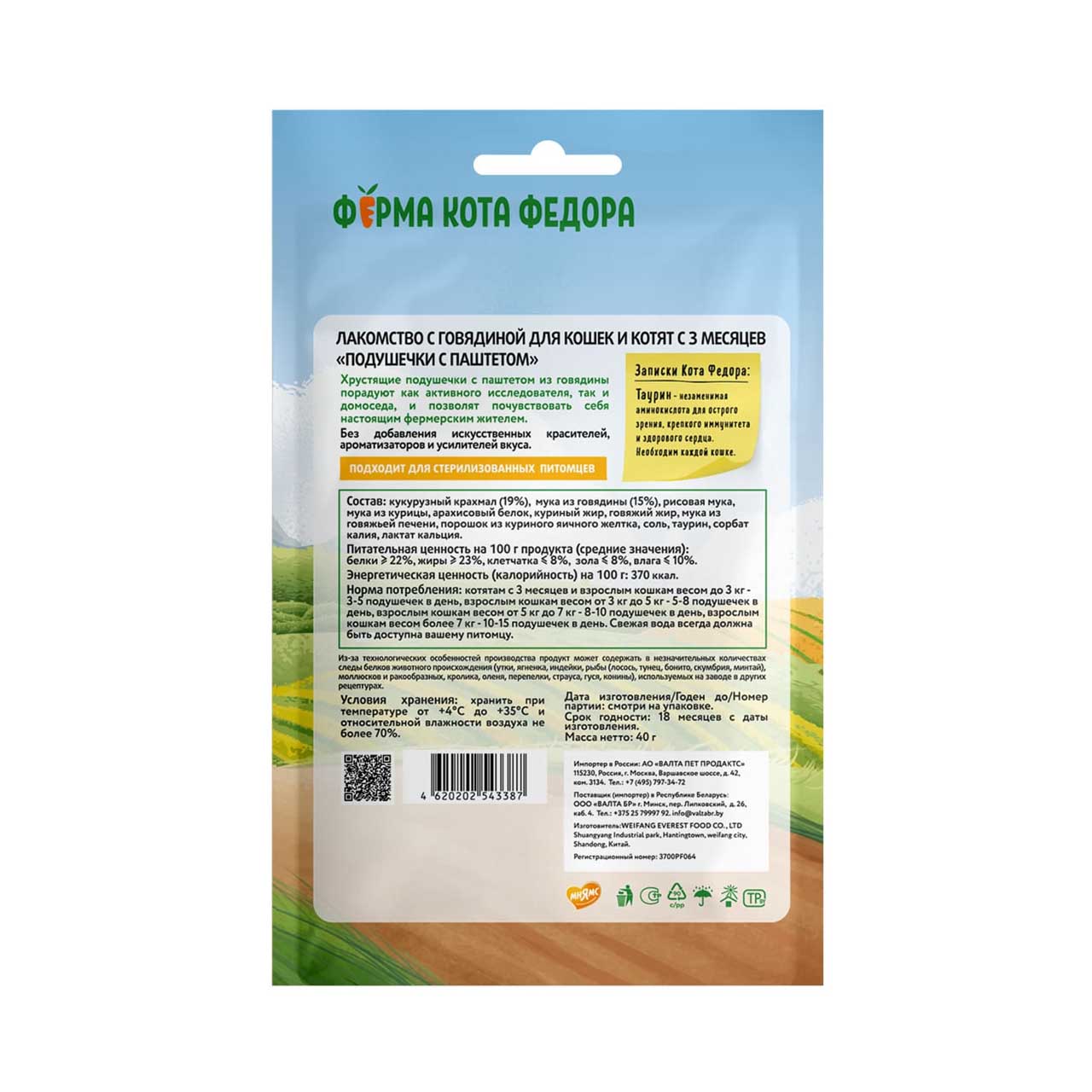 Хрустящие подушечки "Ферма кота Федора" с паштетом из говядины порадуют как активного исследователя, так и домоседа, и позволят почувствовать себя настоящим фермерским жителем. Натуральные ингредиенты с оптимальным количеством витаминов и минералов точно придутся по вкусу вашему питомцу. Без добавления исскуственных красителей, ароматизаторов и усилителей вкуса. Хрустящие подушечки подойдут как для котят, так и для взрослых кошек.