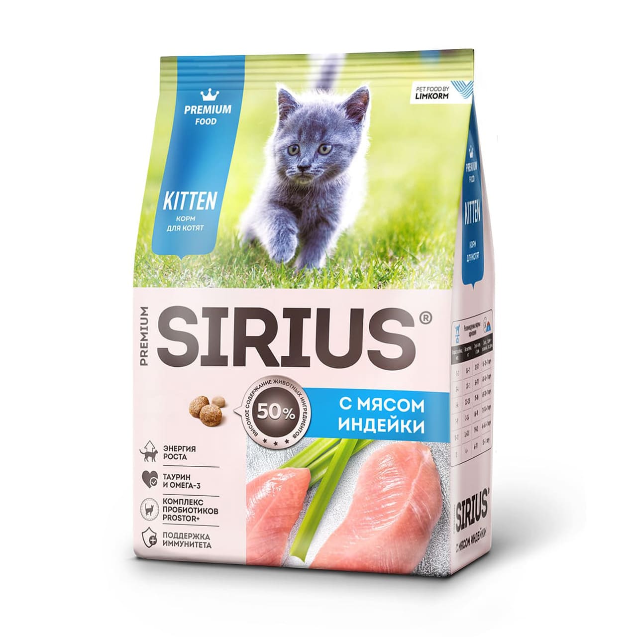 SIRIUS - сухой корм премиум-класса для полноценного ежедневного рациона котят с 1-2-х месяцев до 1 года.