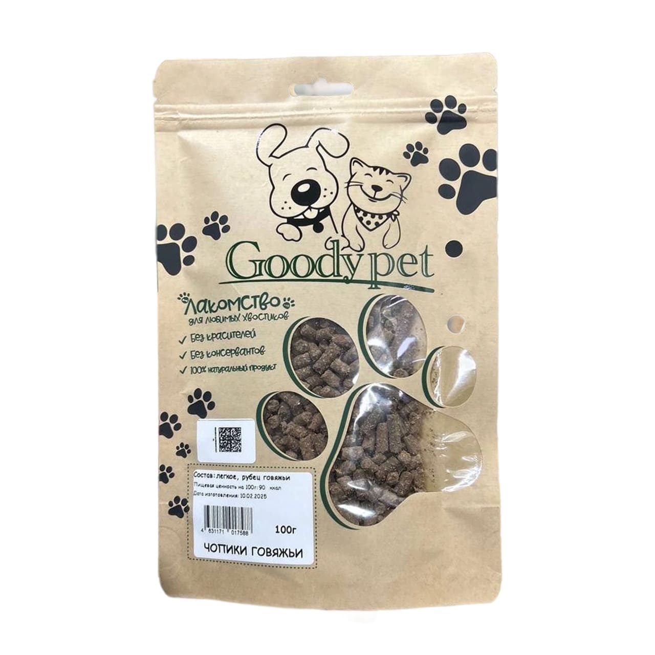 Состав: субпродукты говяжьи (рубец, легкое).