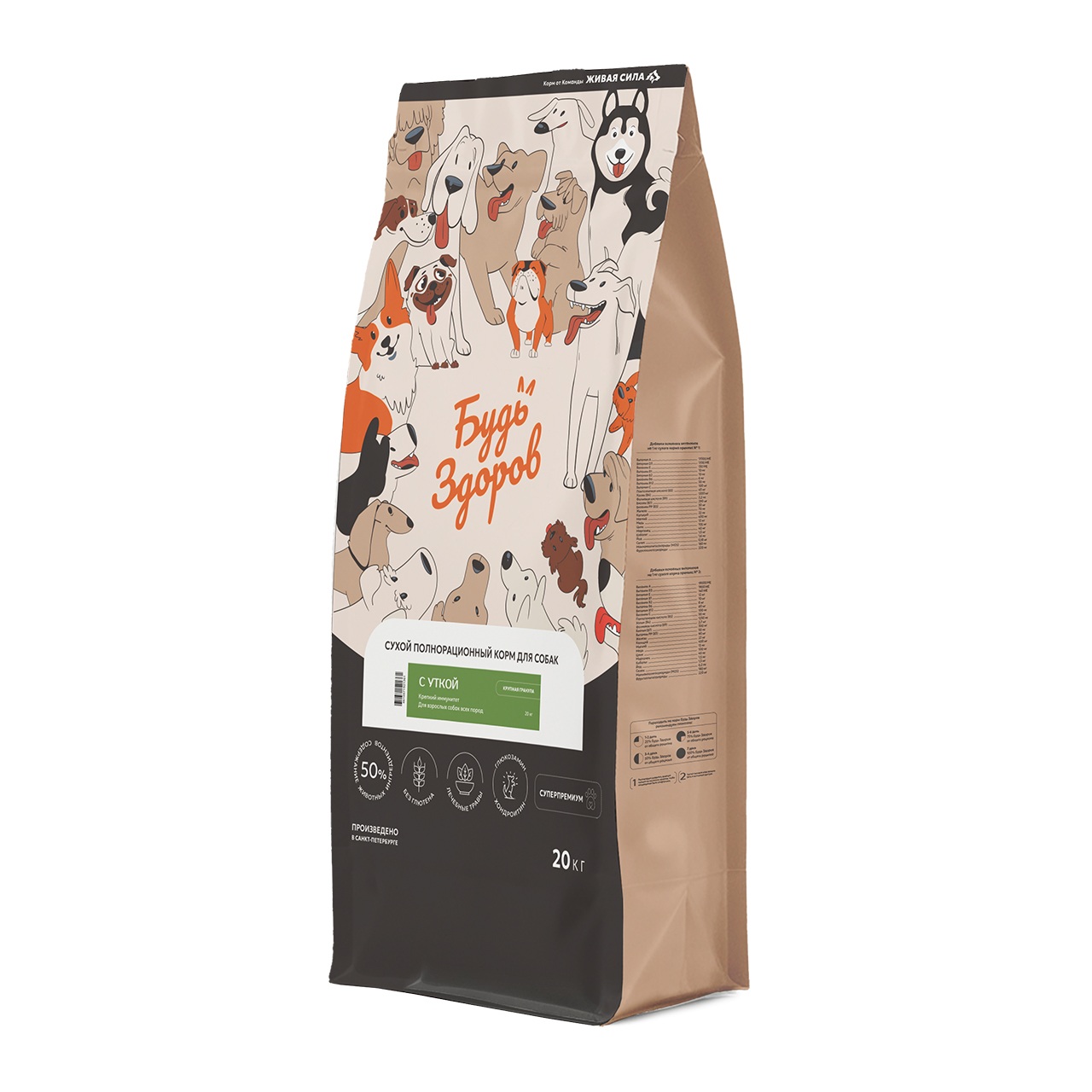 Будь Здоров с уткой (крупная гранула) - корм для взрослых собак, поддержка иммунитета.