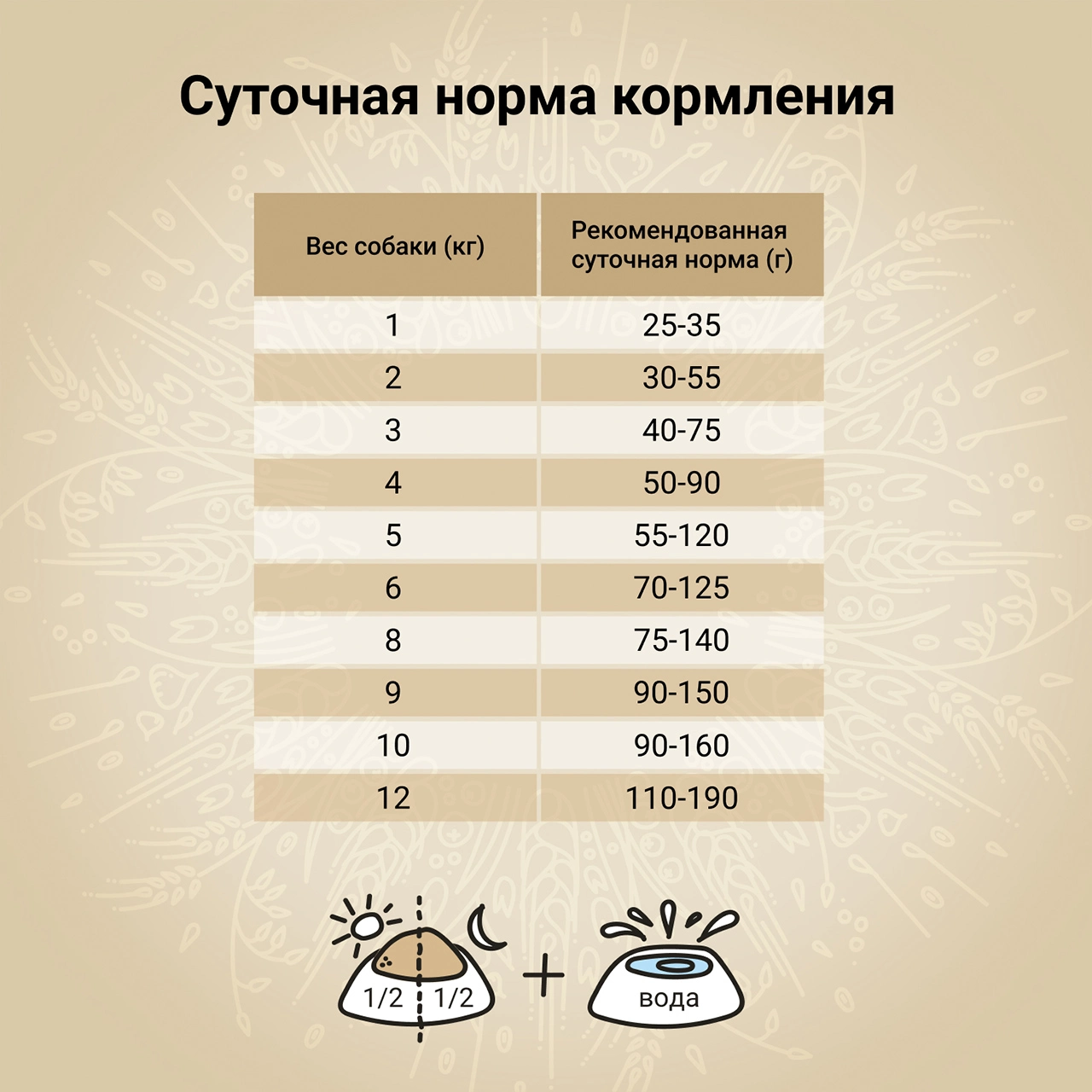 Размер гранул корма адаптирован для собак мелких и миниатюрных пород.