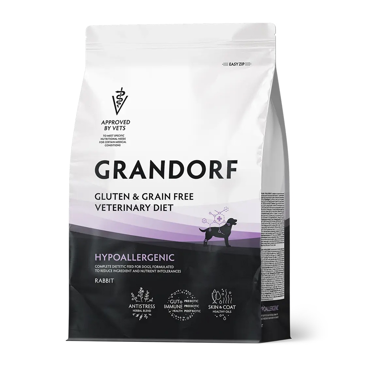GRANDORF VET Hypoallergenic - это полнорационный диетический корм для собак, применяемый при пищевой аллергии или пищевой непереносимости.