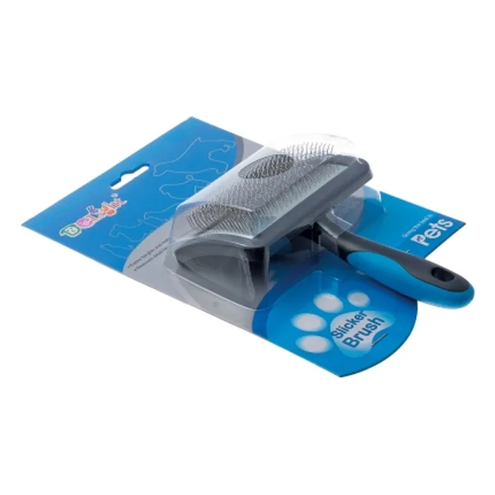 Пуходерка имеет частую металлическую щетину, удаляет старую шерсть, стимулирует волосяные луковицы, придает шерсти здоровый, пушистый вид. Избавляет от колтунов и спутывания.