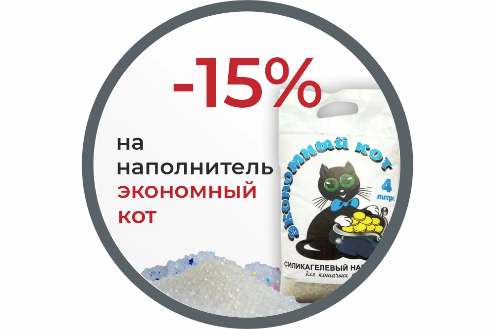 СКИДКА 15% на наполнитель силикагелевый для кошачьих туалетов Экономный кот шарики.