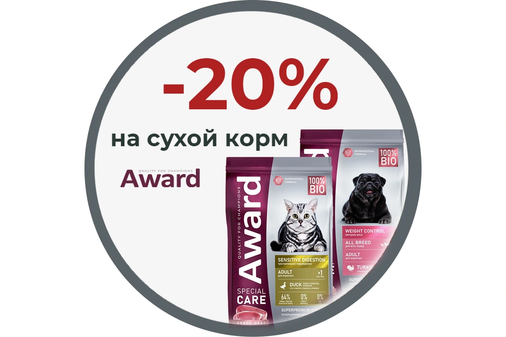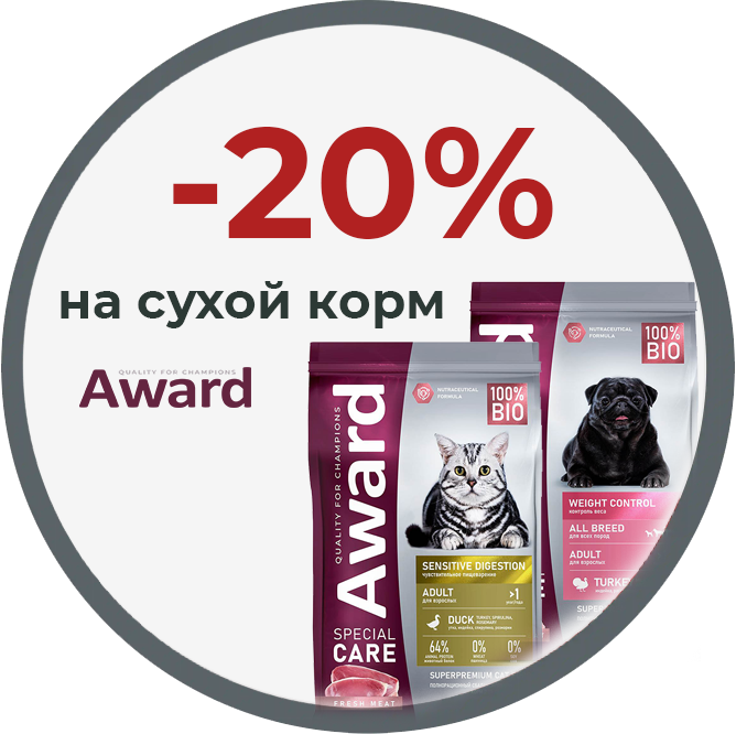 Акция на отдельные рационы сухого корма для собак и кошек Award серии SPECIAL CARE.